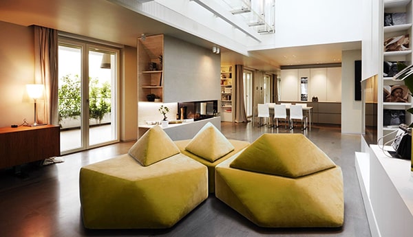 - Floor has distinct ring emitting vivid color to fill surrounding.